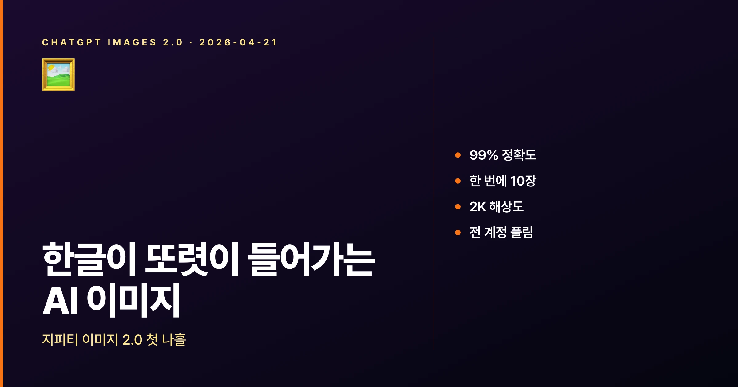 지피티 이미지 2.0 은 한국 사용자에게 가장 큰 의미가 있는 업데이트다. 1년 동안 막혀 있던 한글 텍스트 작업이 한 줄 프롬프트로 끝난다. 긴 본문까지 한국어로 그려주는 모델이 일반 사용자에게 풀린 건 이번이 처음이다.