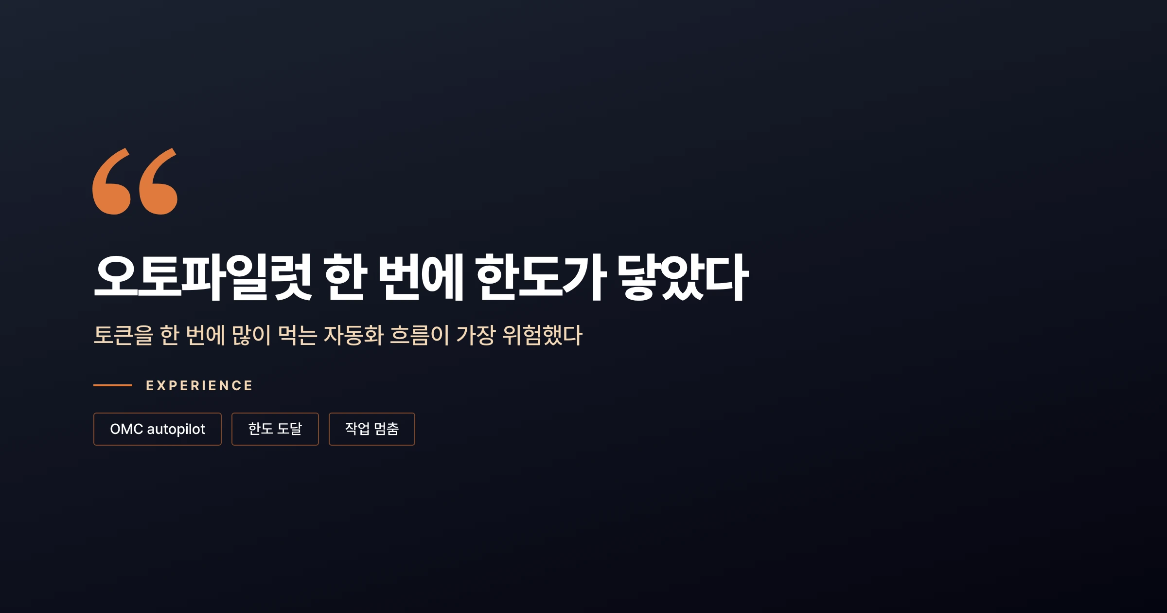 그날은 그냥 작업을 멈췄다. 이후로는 오토파일럿처럼 토큰을 한 번에 많이 먹는 흐름은 일단 보류하고, 익숙한 대화 위주로 돌아왔다. 자동화 단계를 내가 끊어 가며 쓰는 식이다.